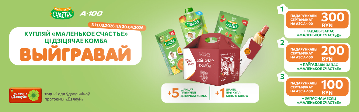 Покупай «Маленькое счастье» или детское комбо на АЗС А-100 с брелоком «Дзякуй» и участвуй в розыгрыше!